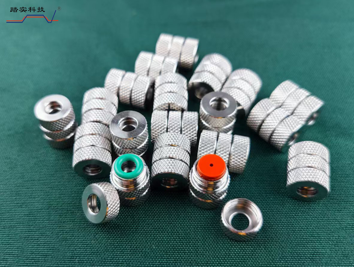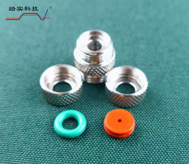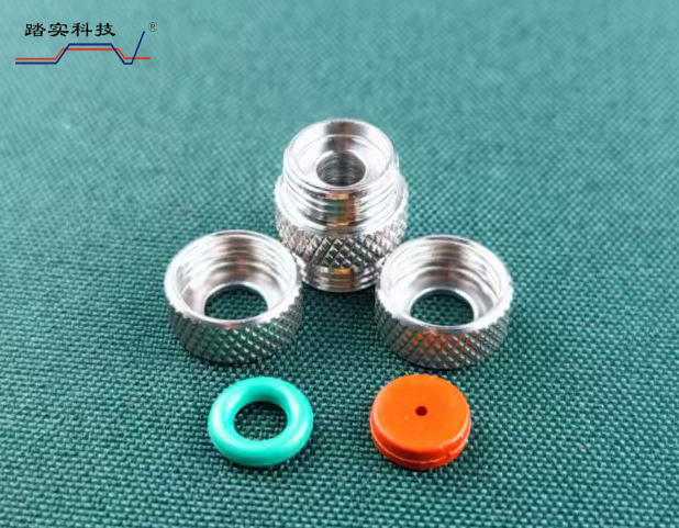 3、安裝方法按上圖中的順序,注意接頭兩通一面開的錐形槽,與O形圈、螺母、吸附管相連接,擰緊不能漏氣。一面開的平面槽,放進樣隔墊,進樣隔墊的預留孔朝外。手擰至沒有間隙時,再擰約1/2圈即可,這時進樣隔墊因擠壓向外凸起,凸點不應超出螺母平面。另一端安裝方法相同。放入轉盤時,箭頭方向始終保持朝下。